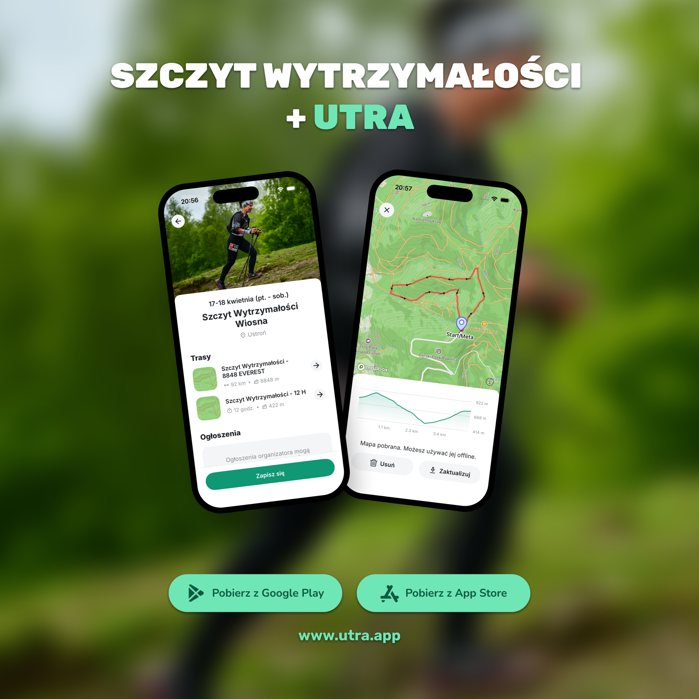Informujemy, że zarówno rajdy piesze Beskidzkie Grónie, jak i ekstremalny bieg górski Szczyt Wytrzymałości są już dostępne w aplikacji UTRA.